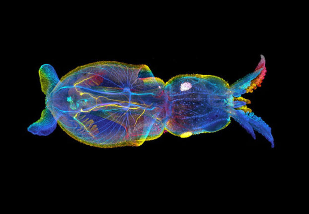 A1 – Aparelho nervoso de uma pequena sépia. Foto: Nat Clarke