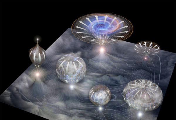 1. Universos paralelos – Segundo Alan Guth, físico do Mit di Boston (EUA), o nosso universo surgiu a partir de uma instabilidade do “vazio” primordial. Esse vazio era semelhante a um fluido extremamente quente, no qual surgiam bolhas em contínua expansão… exatamente como acontece numa panela d’água em ebulição.Nosso universo era uma das bolhas, as outras bolhas eram universos “paralelos” ao nosso. O Modelo de Guth foi superado pelo de Andrei Linde, físico da Universidade de Stanford (EUA), segundo o qual os universos não nascem de um estado primordial quentíssimo, mas sim de flutuações de certos parâmetros no vazio. Segundo Linde, a realidade última é um “multiverso”: uma espécie de fluxo eterno de universos que nascem uns dos outros.O universo seria constituído de muitas bolhas que, por sua vez, produzem novas bolhas, em um processo infinito. As bolhas são criadas a partir de repentinas mudanças das características energéticas do vazio. As constantes físicas (como a velocidade da luz) teriam valores diferentes em cada uma das bolhas.