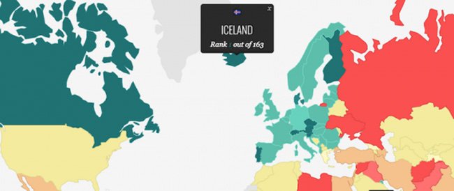 A Islândia ocupa o primeiro lugar na lista das nações mais pacíficas e seguras. Fonte Site Vision of Humanity