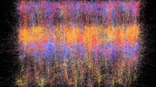 Simulação de atividade em um microcircuito de neurônios virtuais de um rato (2015), feito pela equipe do “Blue Brain Project” (BBP), parte do “Human Brain Project” europeu (HBP).