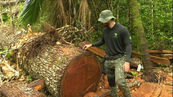 O desmatamento por correntes – quando dois tratores puxam um correntão que arranca e arrasta áreas inteiras das florestas – está proibido. Mas continua sendo praticado em muitos pontos da Amazônia.