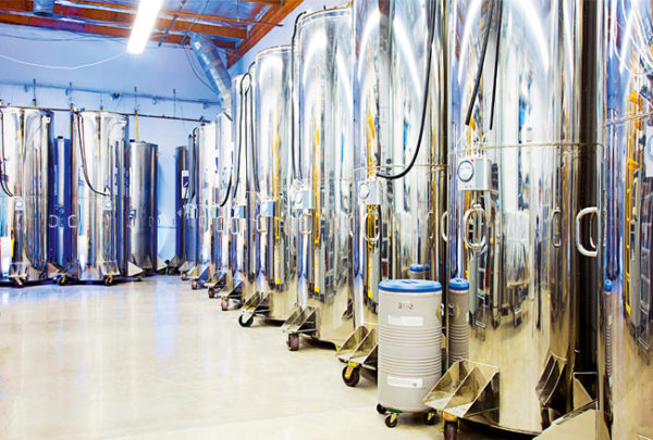 Cilindros que preservam corpos humanos mantendo-os a uma temperatura extremamente baixa.