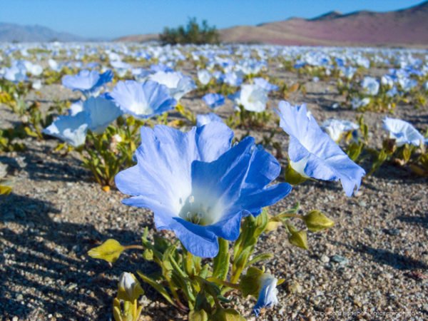 Há poucos dias, o Deserto do Atacama, no norte do Chile, um dos lugares mais inóspitos do planeta, se transformou numa imensa pradaria coberta de flores. O fenômeno só acontece a cada 6-7 anos, graças a chuvas de primavera particularmente intensas.